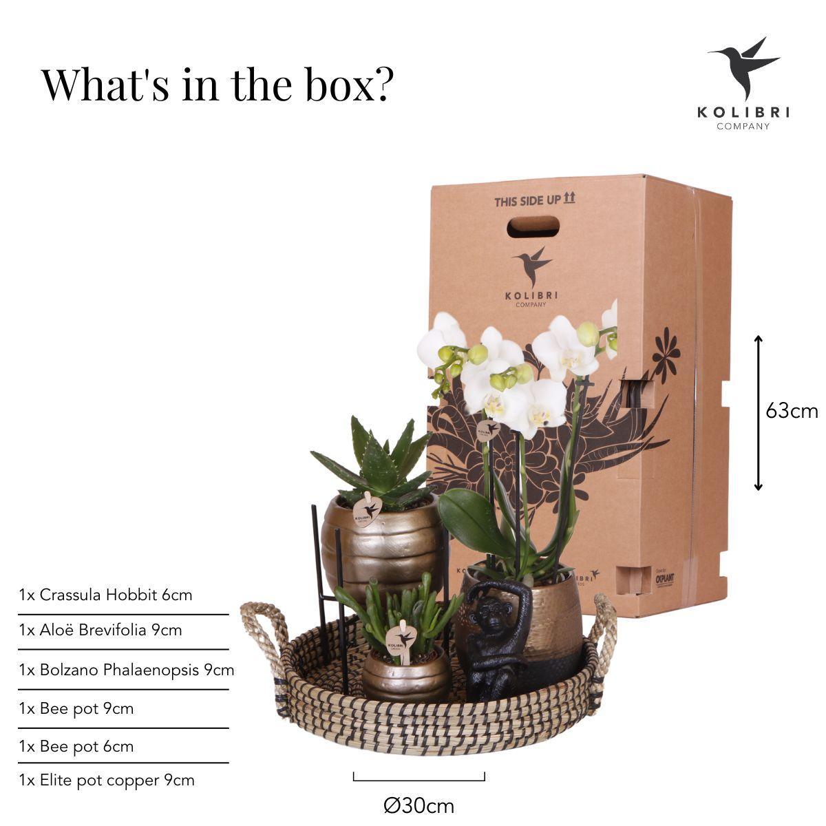 Opdag den perfekte kombination af elegance og natur med vores gaveæt Home Hub. Dette robuste plantesæt består af en smuk orkide og to forskellige grønne planter, alle præsenteret i kobberfarvede dekorationspotter. Med potter i størrelserne 6 og 9 centimeter tilføjer disse planter et strejf af friskhed til ethvert rum. Uanset om det er til dig selv eller som gave til en elsket, er dette komplette sæt garanteret en succes. Tag naturen med hjem og nyd den beroligende skønhed af dette unikke plantesæt.