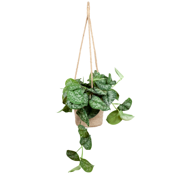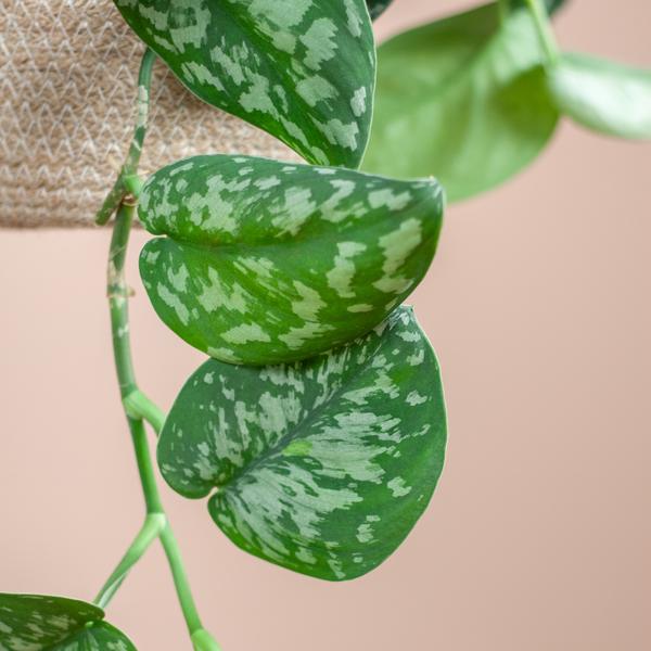 Scindapsus Pictus Argyraeus, også kendt som Sølvrank, er en smuk stueplante, der skiller sig ud med sine hjerteformede blade, der er prydet med sølvfarvede pletter. Denne unikke tegning gør planten til et ægte blikfang i dit hjem. Oprindeligt stammer den fra de tropiske regnskove i Sydøstasien, Indonesien og Salomonøerne, hvor den naturligt klatrer op ad træerne. Det gør den til en ideel hængende plante eller klatreplante til dit hjem.