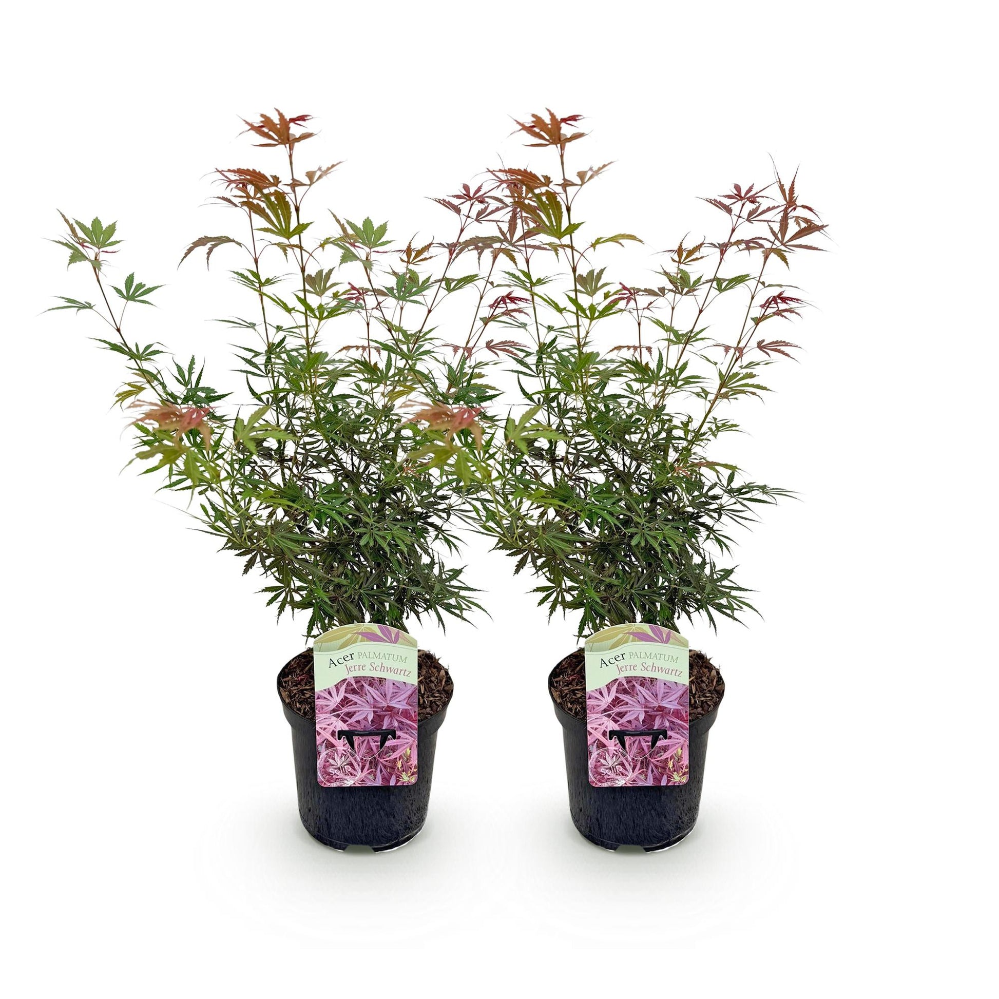 Uteplatsväxt – Japansk lönn – Acer palmatum 'Jerre Schwartz' – Mörkröd – 2 plantor – Lövfällande – Kruka Ø19 cm Höjd 70 cm