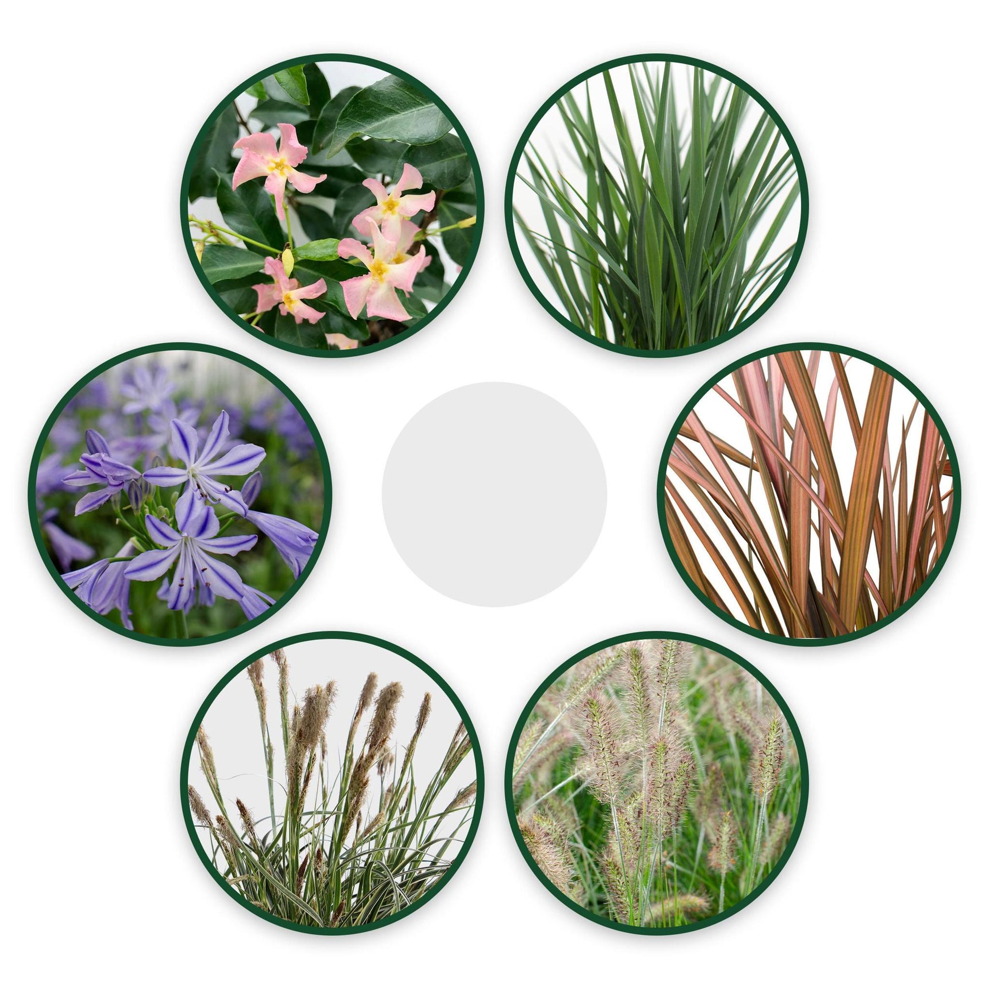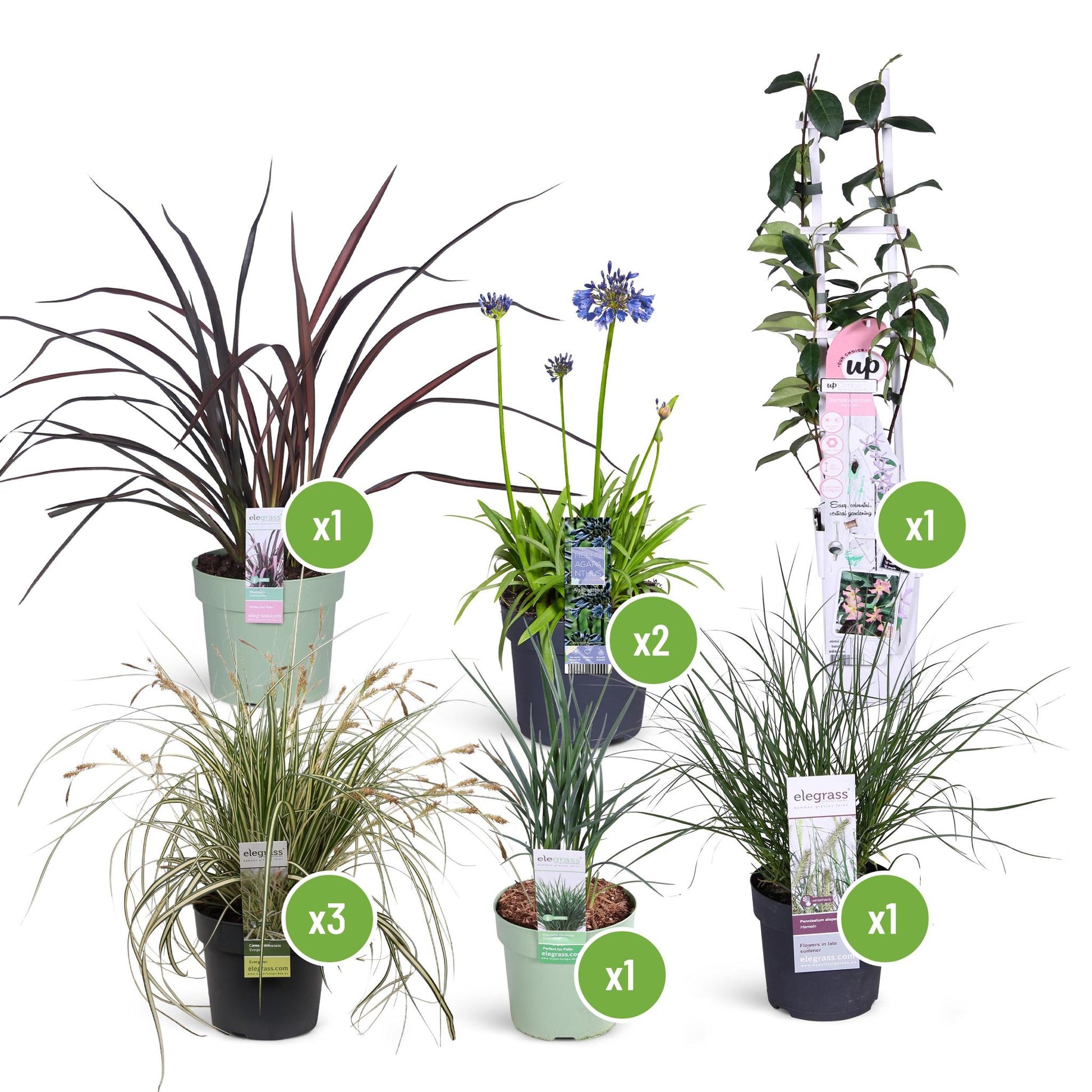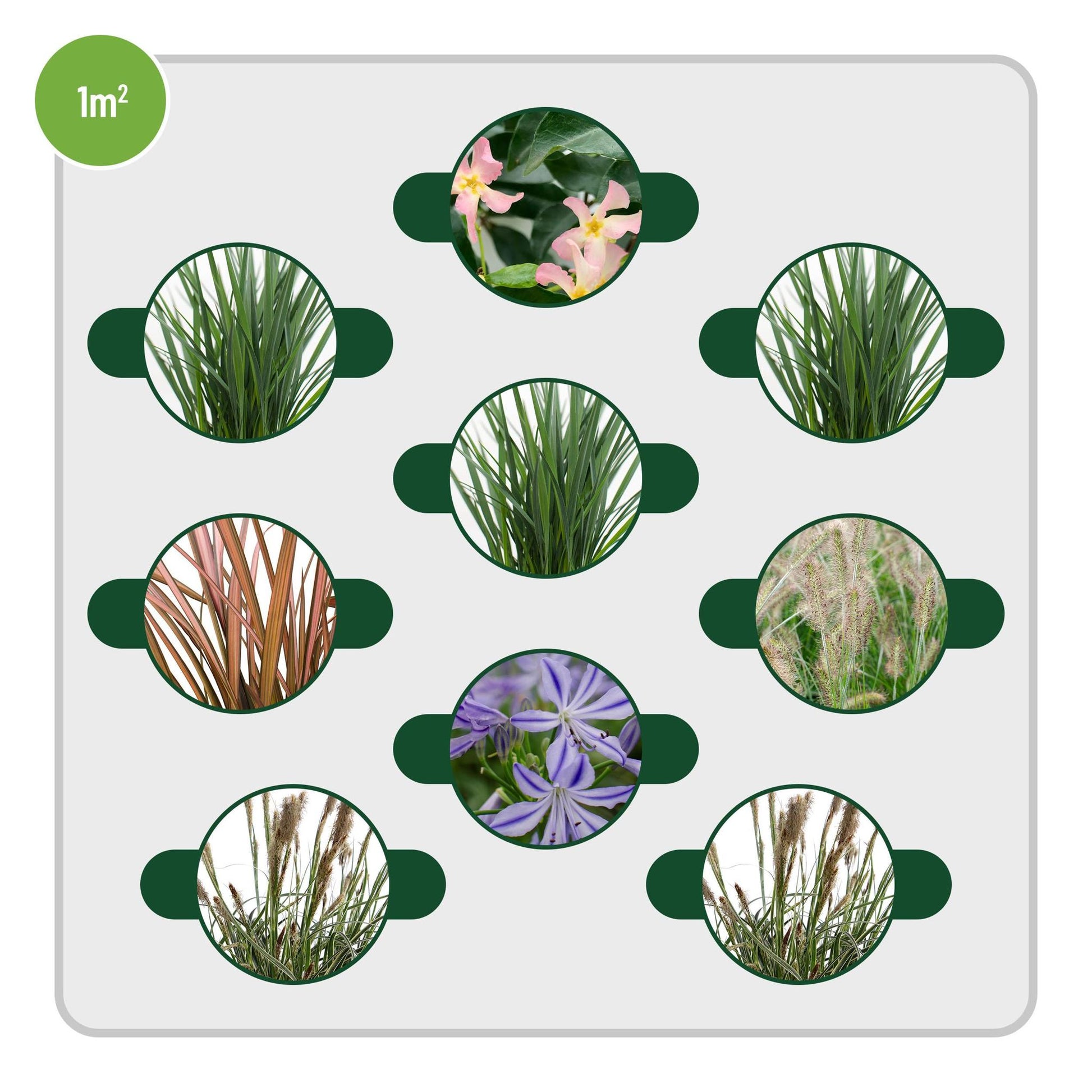 Ibiza Garden är ett paket som låter dig skapa en 1m2 trädgård. Förpackningen innehåller olika växter som skapar en Ibiza-atmosfär. Följande växter ingår i paketet: - Trachelospermum - Pennisetum - 2x Agapanthus - Dianella - Phormium - 3x Carex